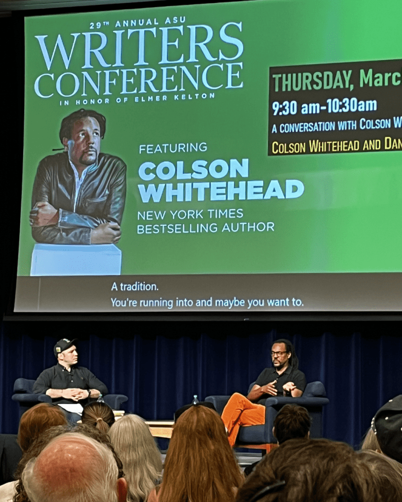 The final blow was the keynote speaker. Colson Whitehead is both politically incongruous with Kelton’s legacy and a poor fit in a conference honoring his name. He is a leftist from Manhattan who spent the entire conference cursing, explaining to the audience how everything was a metaphor for black oppression by whites in America, or joking about wanting to talk about Diversity, Equity, and Inclusion rather than the craft of writing. It made a time of education and mentorship by an established author to aspiring ones look more like the comment section on Blue Sky.